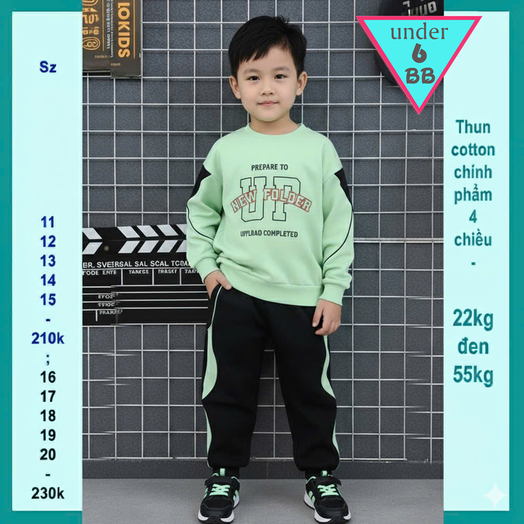 Bản size quần áo trẻ em, đồ bộ bé trai Under 6 Baby