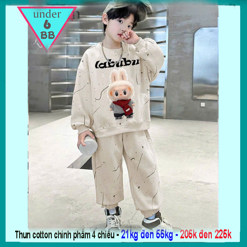 Đồ bộ bé trai tay dài hoạt hình in họa tiết Lababu vệt sơn phong cách cá tính cho bé đi chơi , đi học