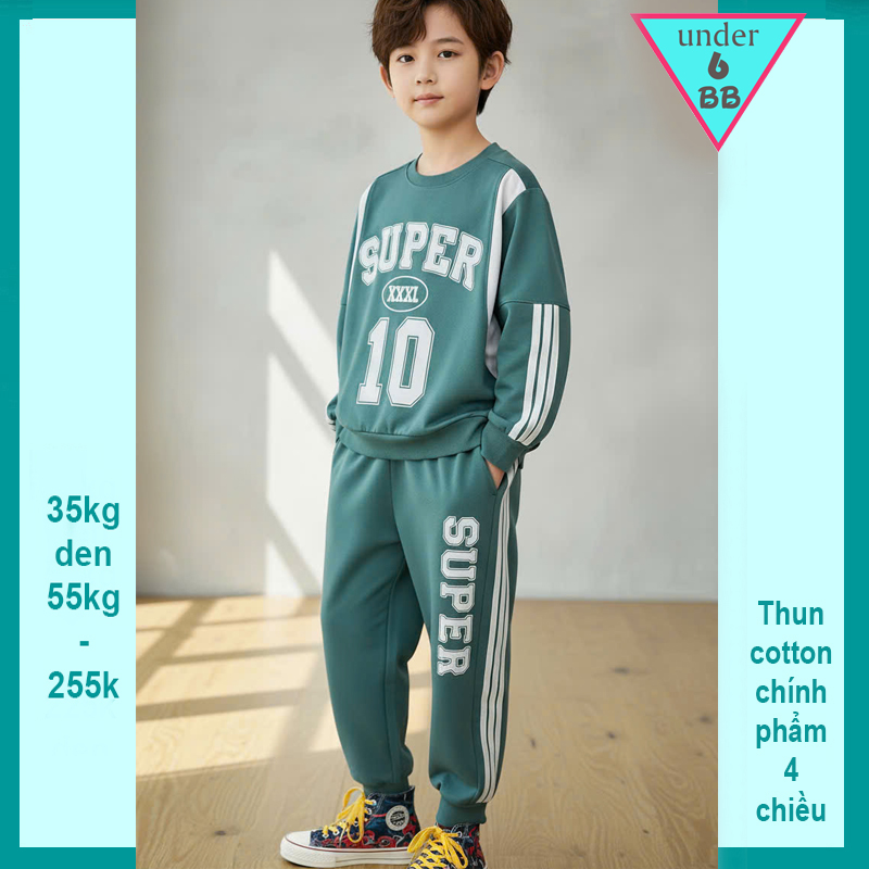 Đồ bộ bé trai tay dài in chữ SUPER 10 phong cách cá tính cho bé đi chơi , đi học