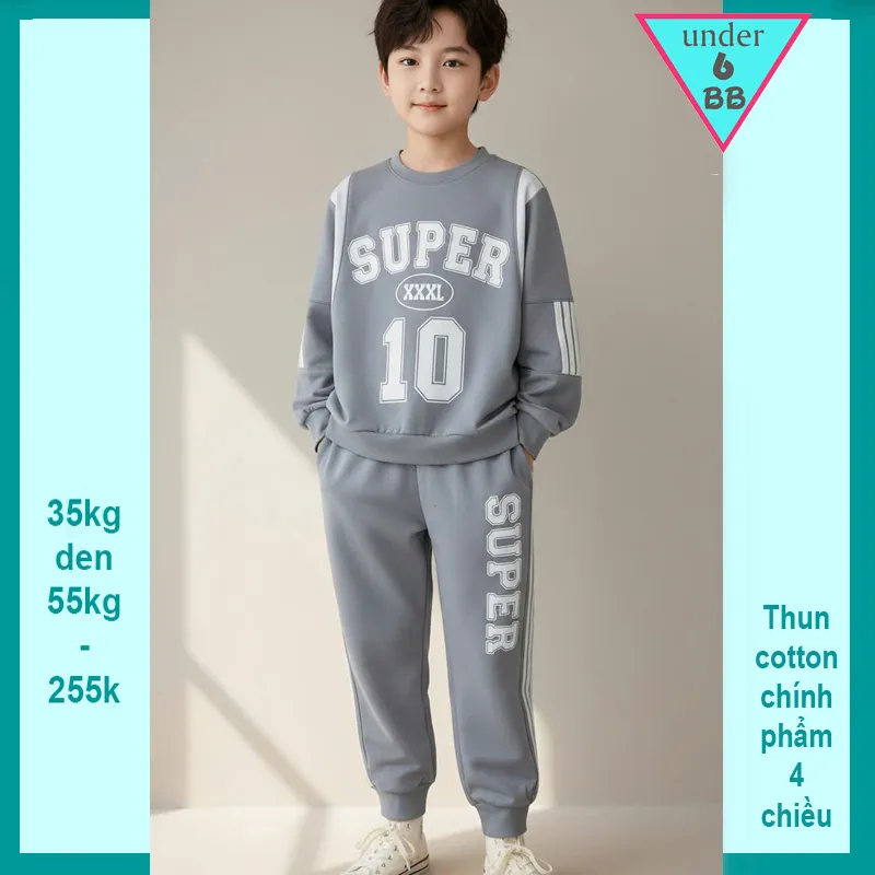 Đồ bộ bé trai tay dài in chữ SUPER 10 phong cách cá tính cho bé đi chơi , đi học