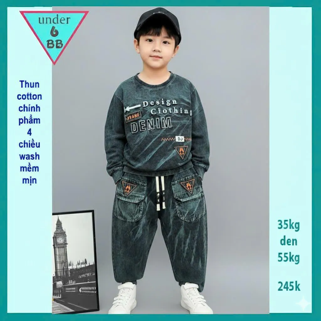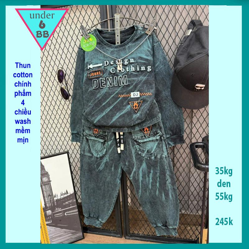Đồ bộ bé trai tay dài cá tính ( Vải wash ) in chữ nổi phong cách cực ngầu cho bé diện đi chơi , du lịch