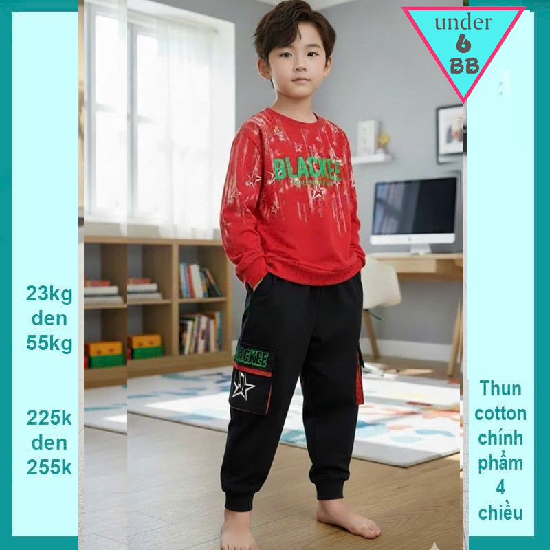 Đồ bộ bé trai tay dài in chữ BLACKEE phong cách hàn quốc cá tính cho bé đi chơi , du lịch