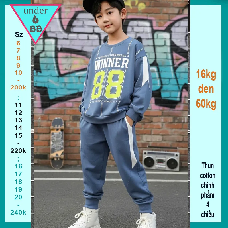 Đồ bộ bé trai tay dài in số 88 phối sọc phong cách hàn quốc cá tính cho bé đi chơi , đi du lịch