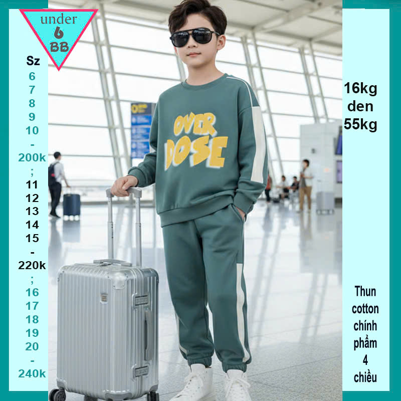 Đồ bộ bé trai tay dài in chữ over DOSE phong cách cá tính cho bé đi chơi , đi học