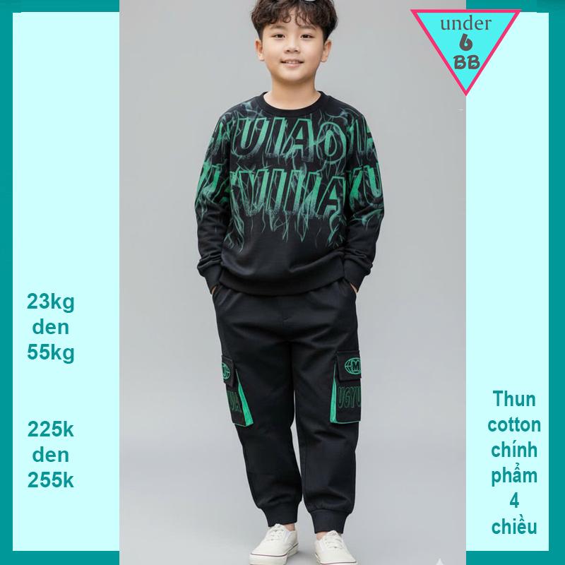 Đồ bộ bé trai tay dài in chữ màu loang phong cách cá tính cho bé diện đi chơi , du lịch