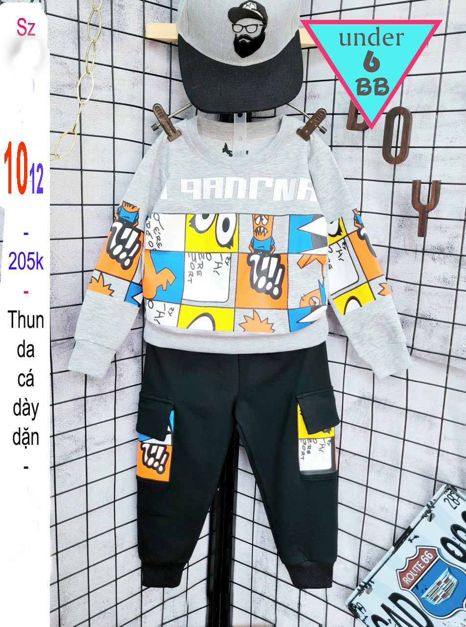Đồ bộ bé trai tay dài dày cá tính in họa tiết hoạt hình dễ thương cho bé đi chơi , đi học