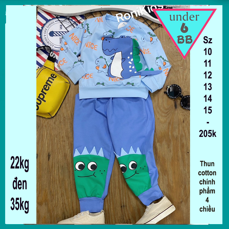 Đồ bộ bé trai tay dài hoạt hình in hình Khủng Long có vẩy siêu dễ thương cho bé đi chơi , đi học