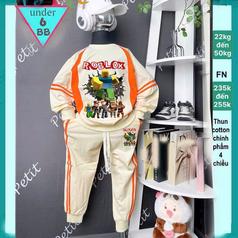 Đồ bộ bé trai tay dài hoạt hình in hình Roblox phong cách cá tính cho bé đi chơi , du lịch