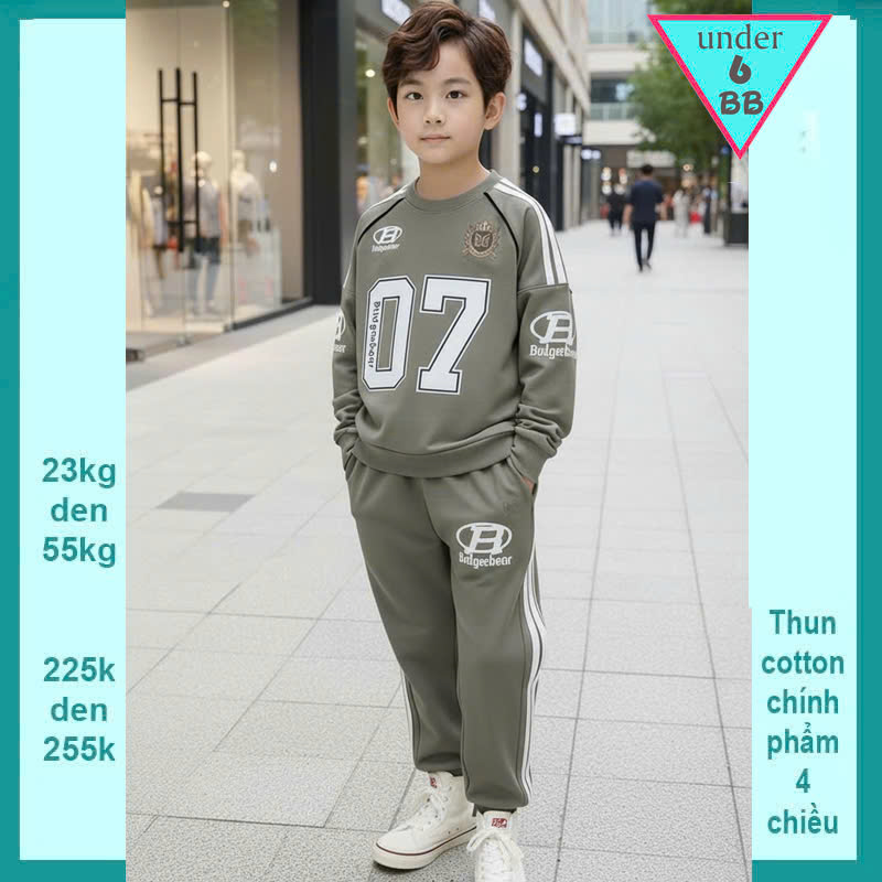 Đồ bộ bé trai tay dài in số 07 phong cách cá tính dành cho bé đi chơi , du lịch