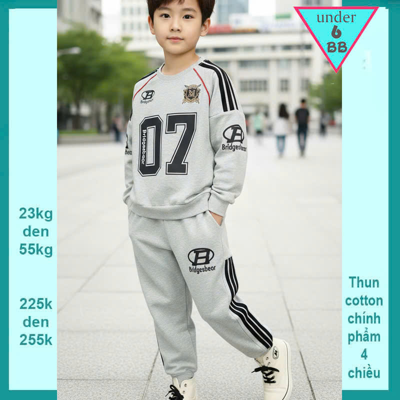 Đồ bộ bé trai tay dài in số 07 phong cách cá tính dành cho bé đi chơi , du lịch