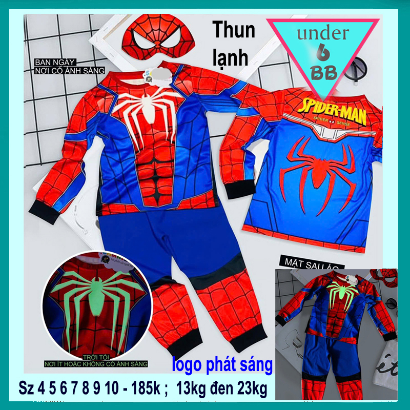 Đồ bộ bé trai tay dài quần dài in 3D logo siêu nhân nhện phản quang cho bé đi chơi ,đi học