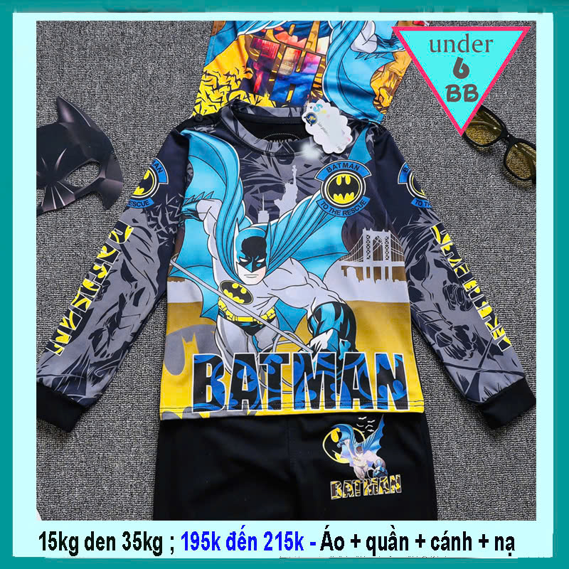 Đồ bộ bé trai tay dài in họa tiết hình siêu nhân Người Dơi - Battman ( kèm cánh + Nạ ) cho bé đi chơi lễ hội hóa trang