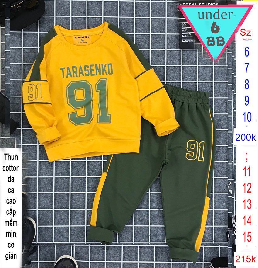Đồ bộ tay dài quần dài in chữ số 91 phong cách cá tính cho bé đi chơi , đi học