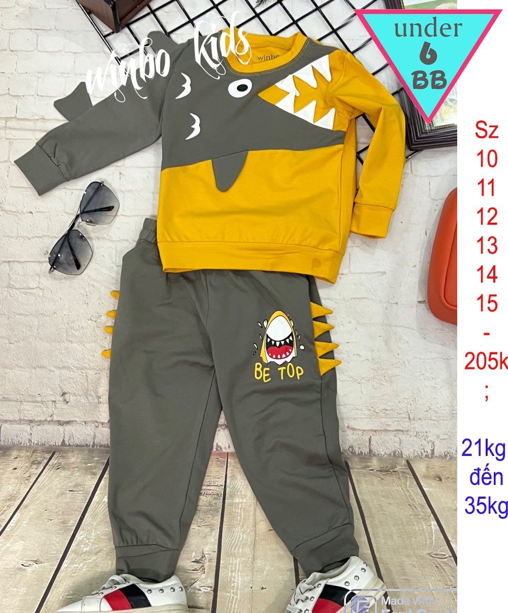 Đồ bộ tay dài quần dài in hình Cá Mập có vẩy siêu đáng yêu cho bé trai đi chơi ,đi học