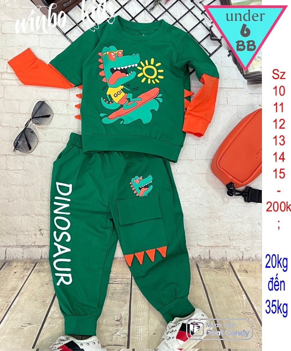 Đồ bộ tay dài quần dài cho bé trai in hình chú khủng long siêu đáng yêu cho bé đi chơi đi học