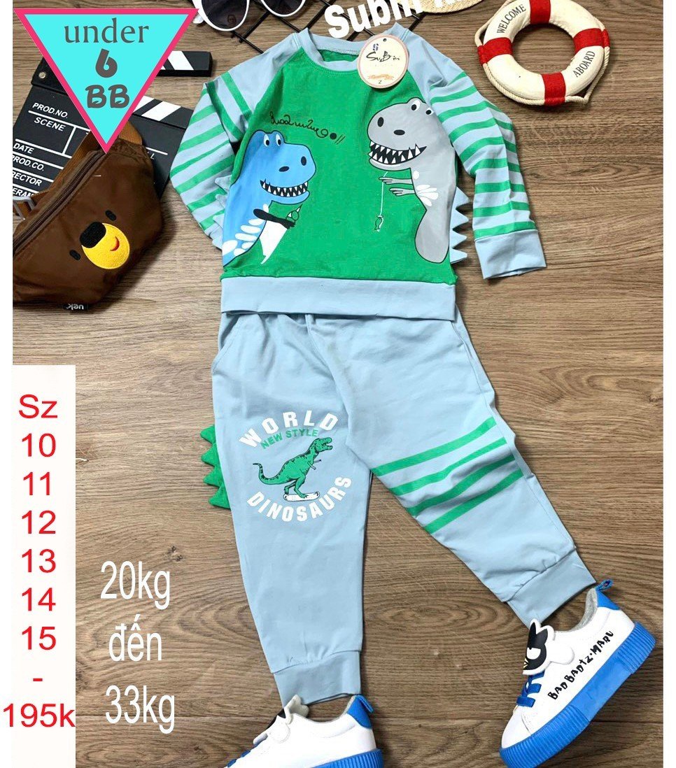 Đồ bộ tay dài quần dài in hình Khủng Long có vẩy siêu đáng yêu cho bé đi học , đi ngủ