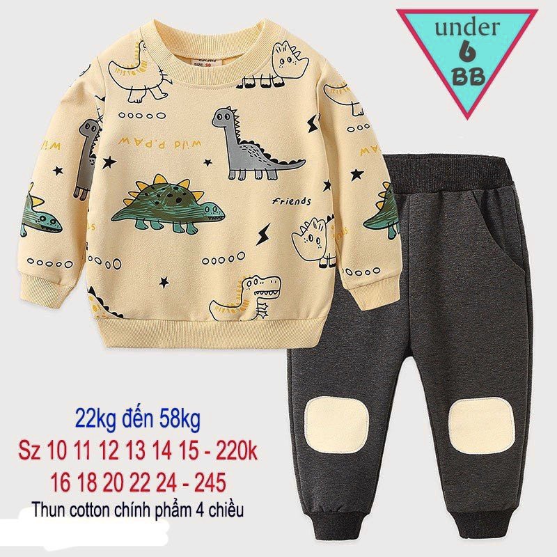 Đồ bộ tay dài quần dài in hình chú khủng long siêu đáng yêu cho bé đi học đi chơi