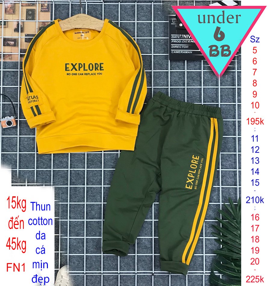 Bản size quần áo trẻ em, đồ bộ bé trai Under 6 Baby