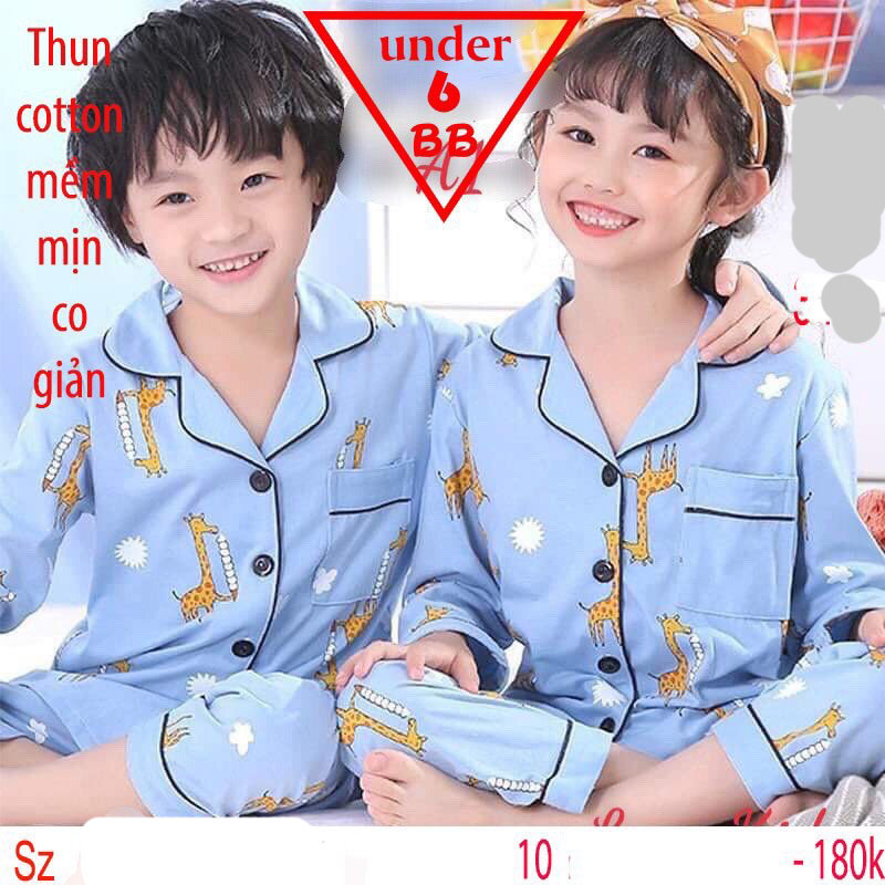 Đồ pijama vải thun cotton cao cấp in họa tiết hoạt hình cho bé đi ngủ