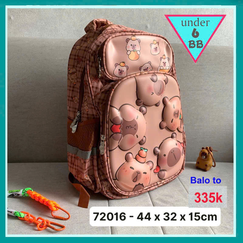 Ba lô đi học in 3D nổi hình Cappybara dễ thương dành cho bé đi học cấp 1