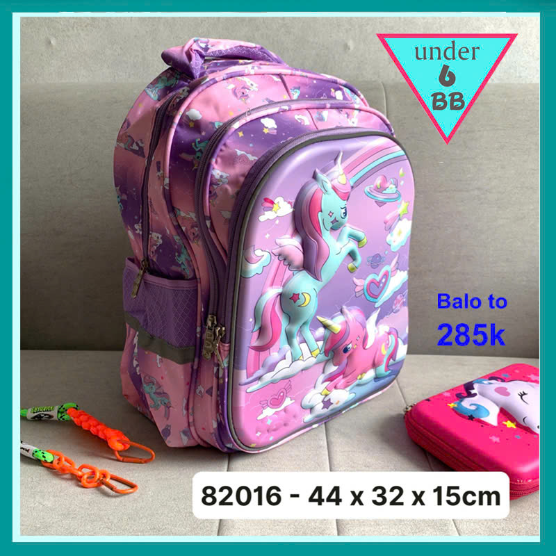 Ba lô đi học bé gái in 3D nổi hình Unicorn - Pony cho bé gái đi học cấp 1