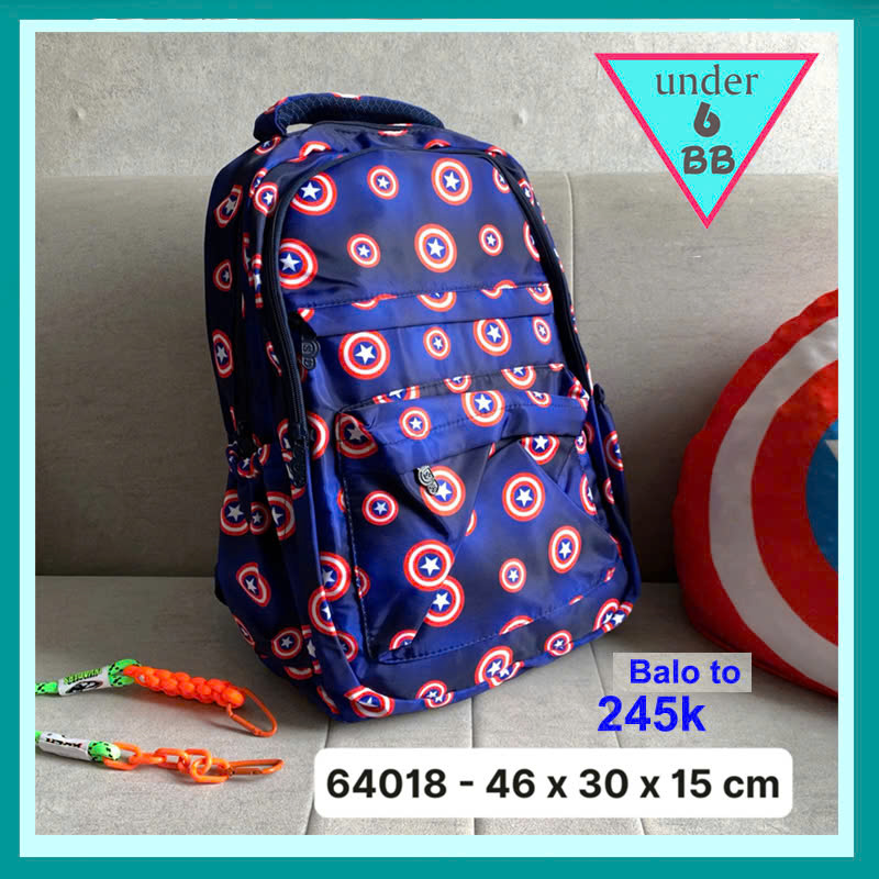 Balo bé trai in họa tiết logo Đội Trưởng Mỹ - Captain America dành cho bé đi học cấp 1