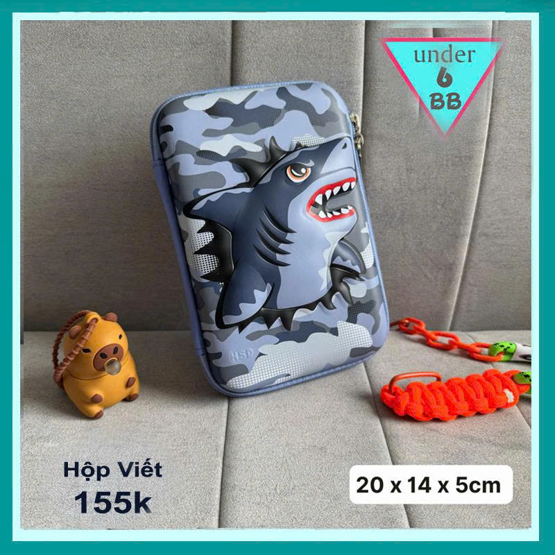 Hộp bút đi học in 3D nổi hình Cá Mập cho bé đi học