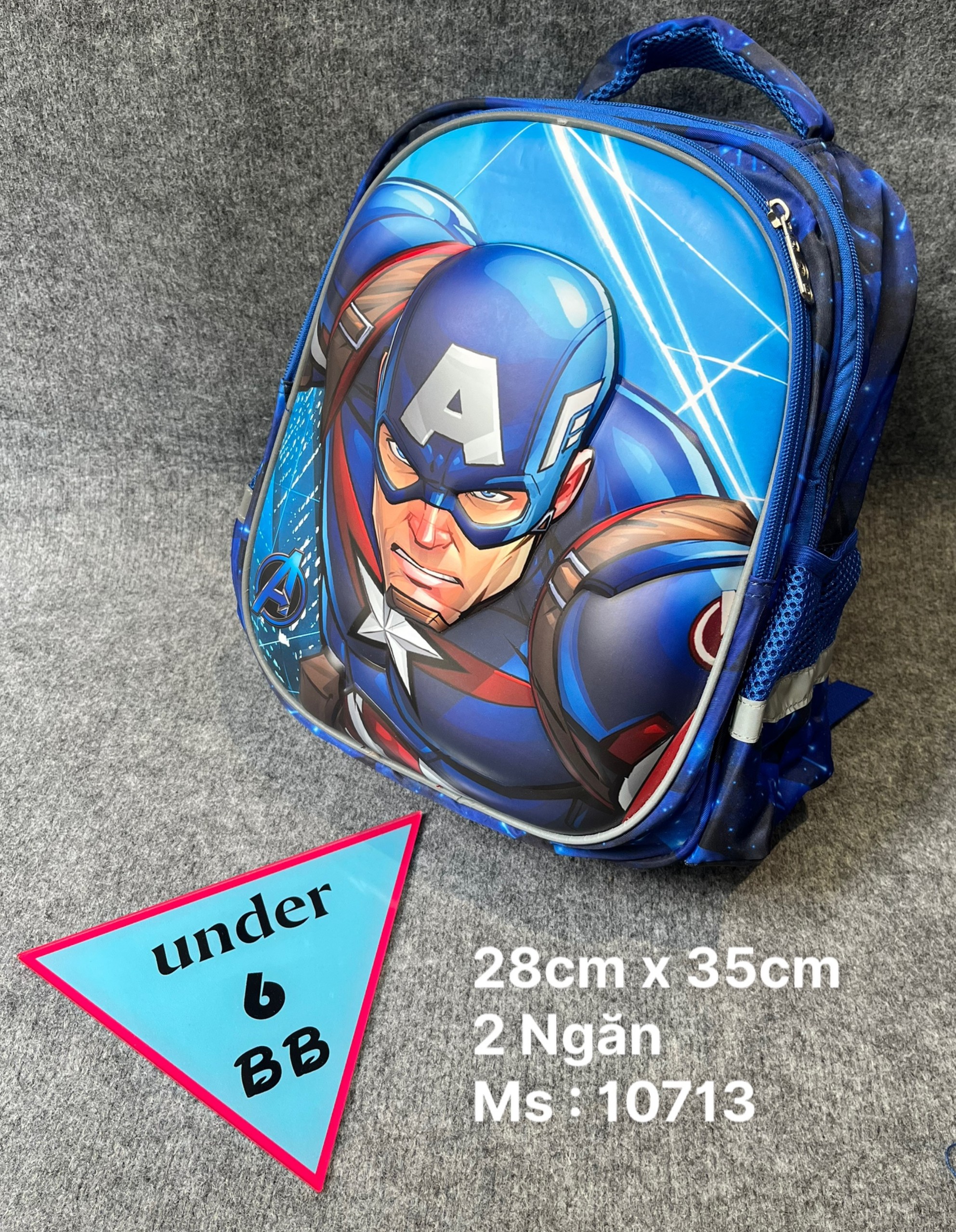 Ba lô in nổi 3D hình Đội trưởng mỹ cho bé trai đi học ( Mã 10713)