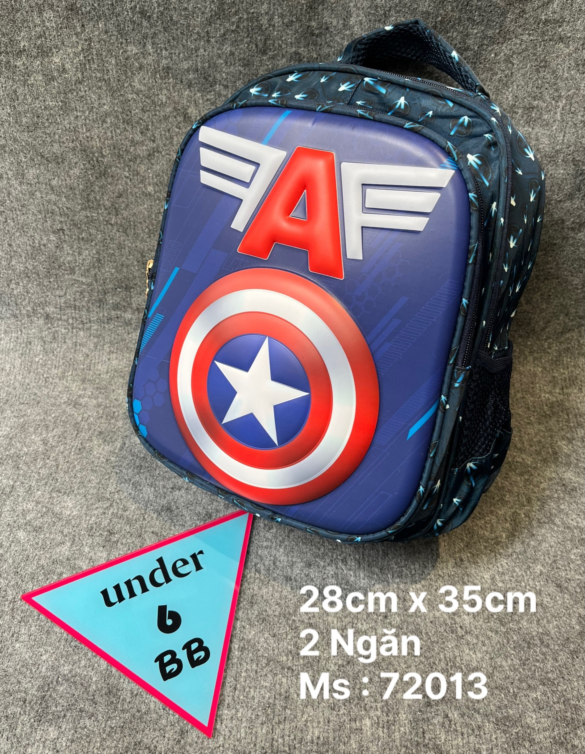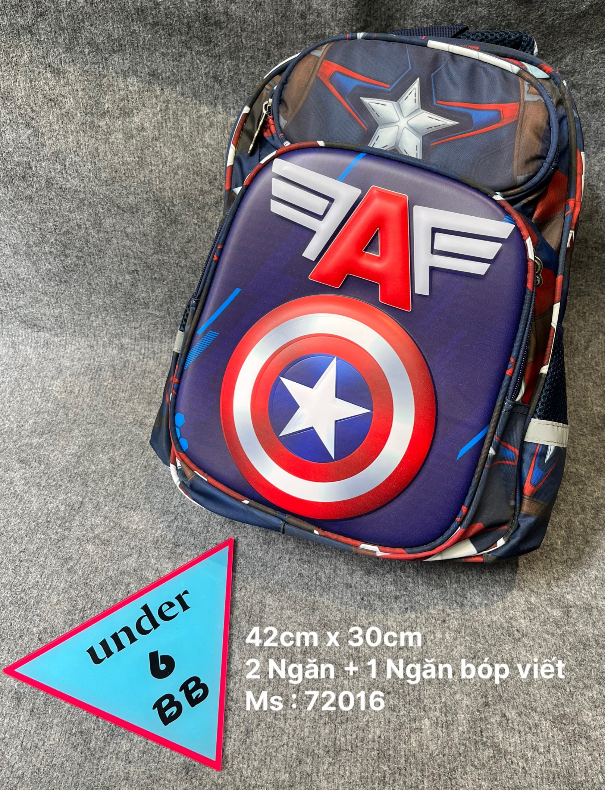 Ba lô in nổi 3D hình logo Đội Trưởng Mỹ - Captain america cho bé đi học