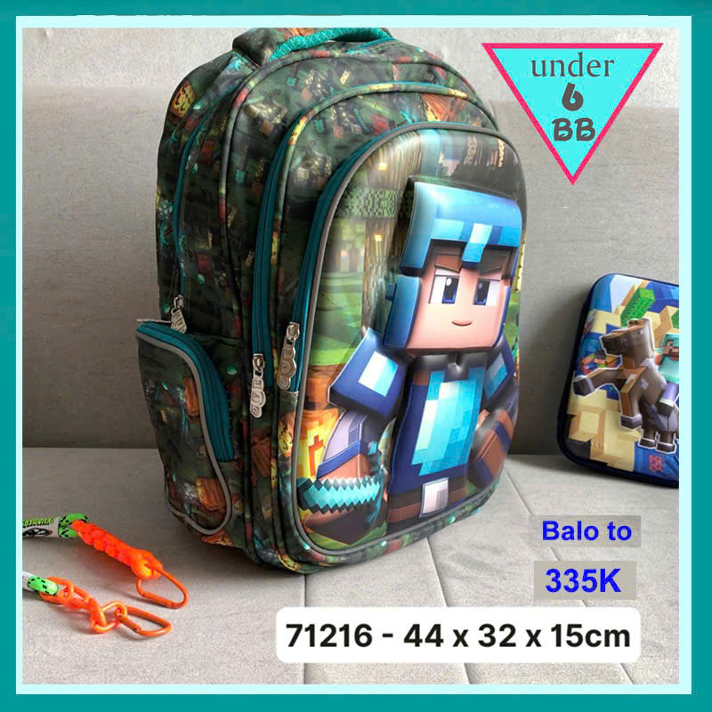 Ba lô bé trai in 3D nổi hình Minecraft dành cho bé đi học cấp 1