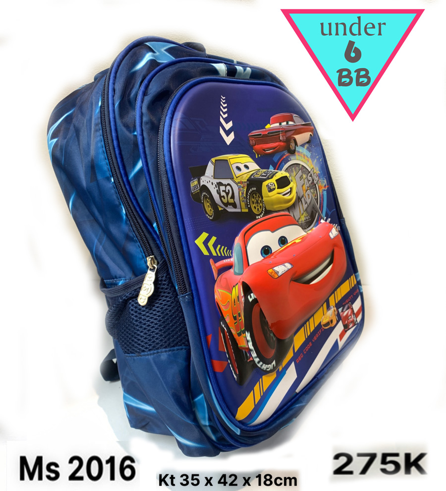 Cặp đi học cho bé trai in nổi 3D hình xe MC Queen cho bé đọc