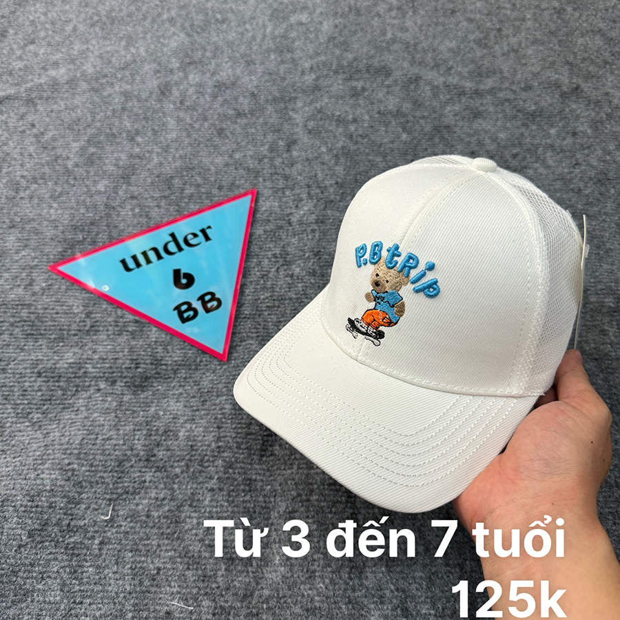Nón bé trai ( 3 tuổi đến 7 tuổi ) thêu chữ hình Chú Gấu cá tính cho bé đi chơi , đi nắng