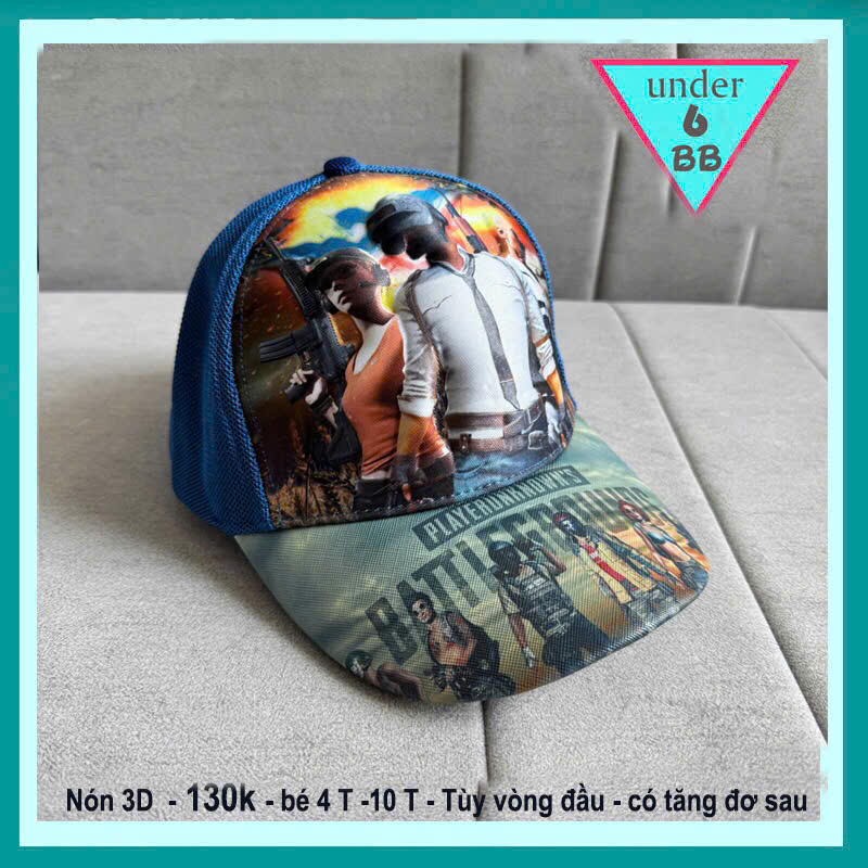 Nón bé trai in 3D nổi hình game bắn súng - PUGB cho bé ( 4 tuổi đến 10 tuổi )