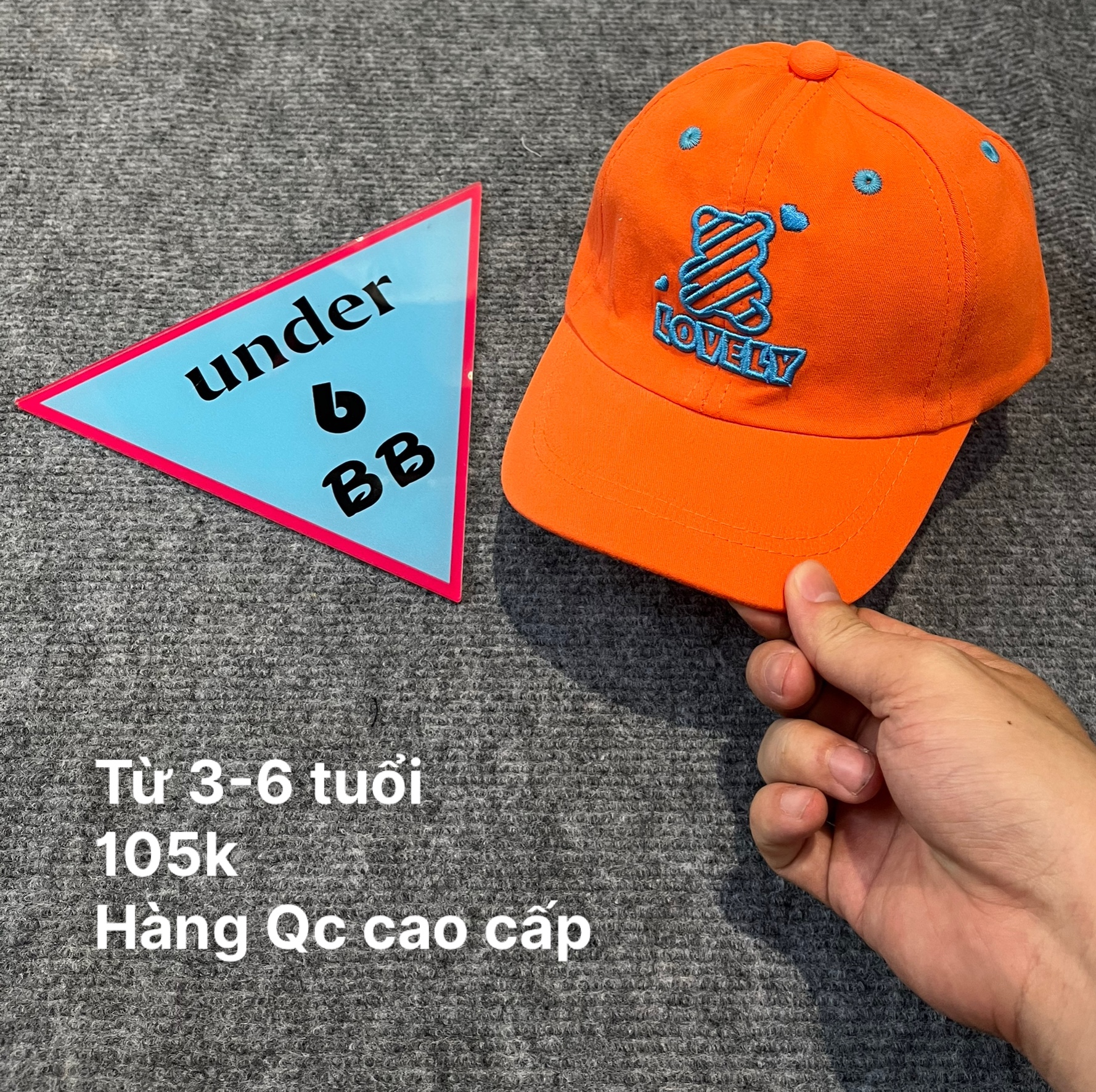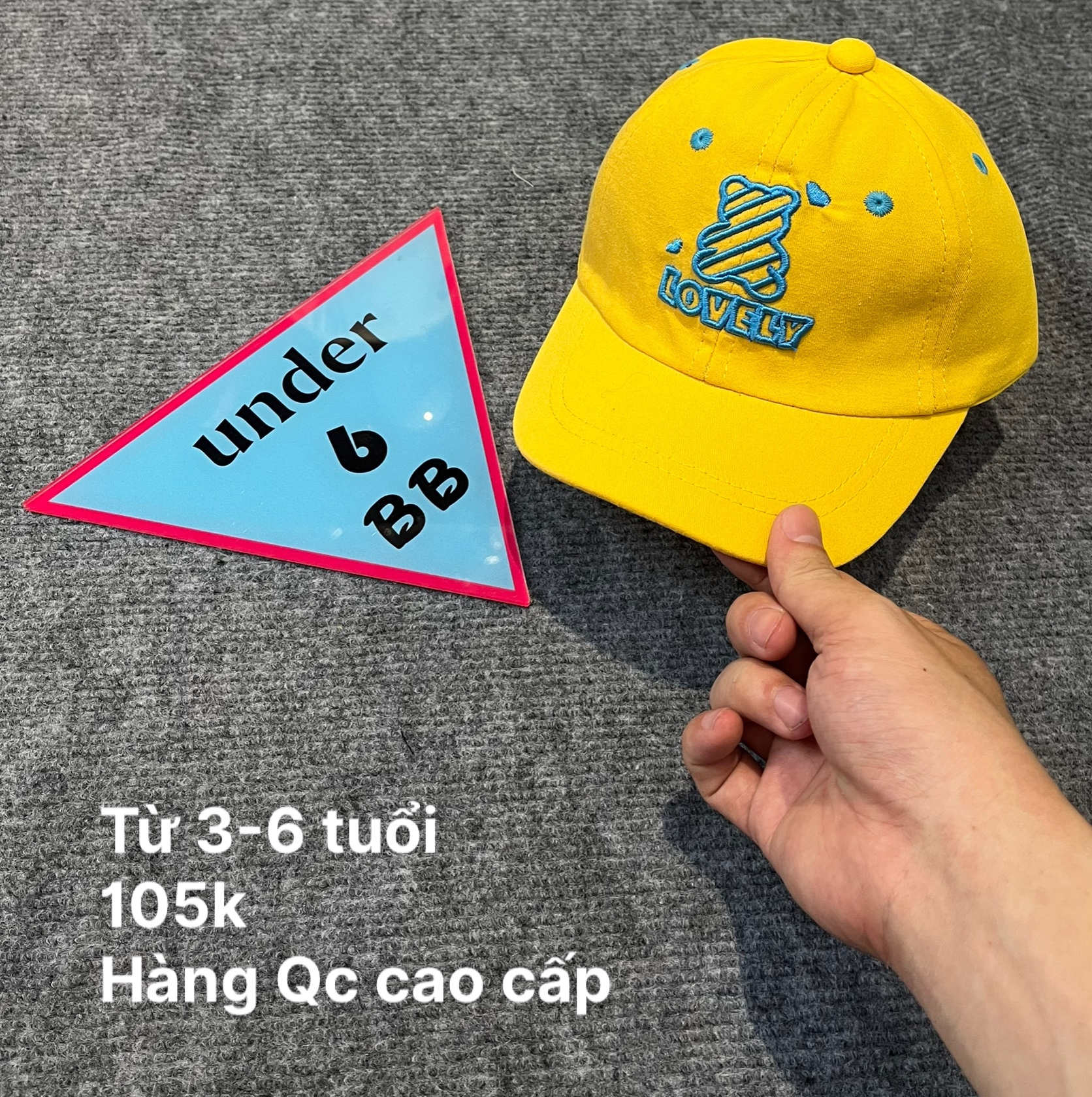 Mũ bé trai thêu chữ hình sắc nét