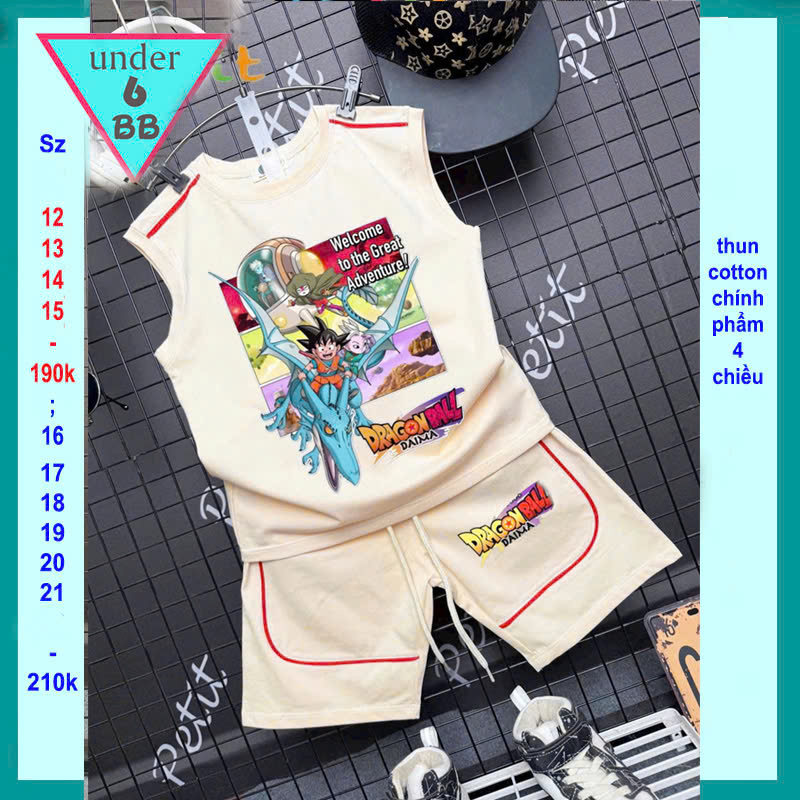 Đồ bộ bé trai sát nách cotton in hình anime Songoku phong cách cá tính cho bé đi chơi , đi học