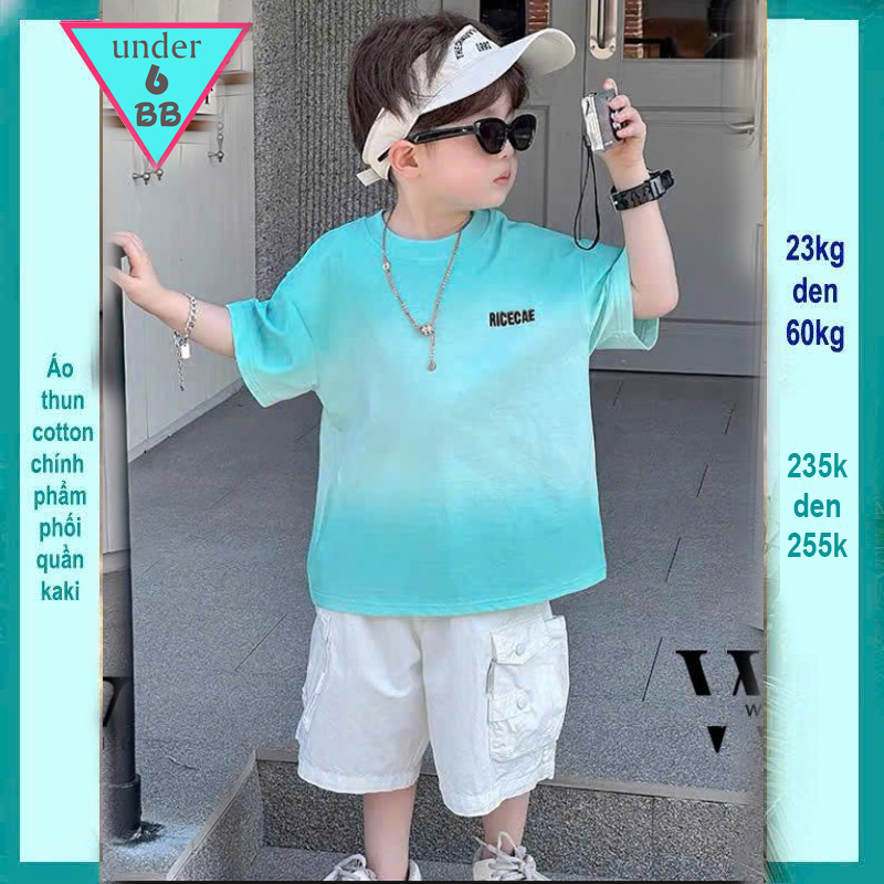 Quần áo bé trai ( Áo thun cotton + Quần kaki ) in chữ phối màu loang phong cách cá tính cho bé diện đi chơi , đi du lịch