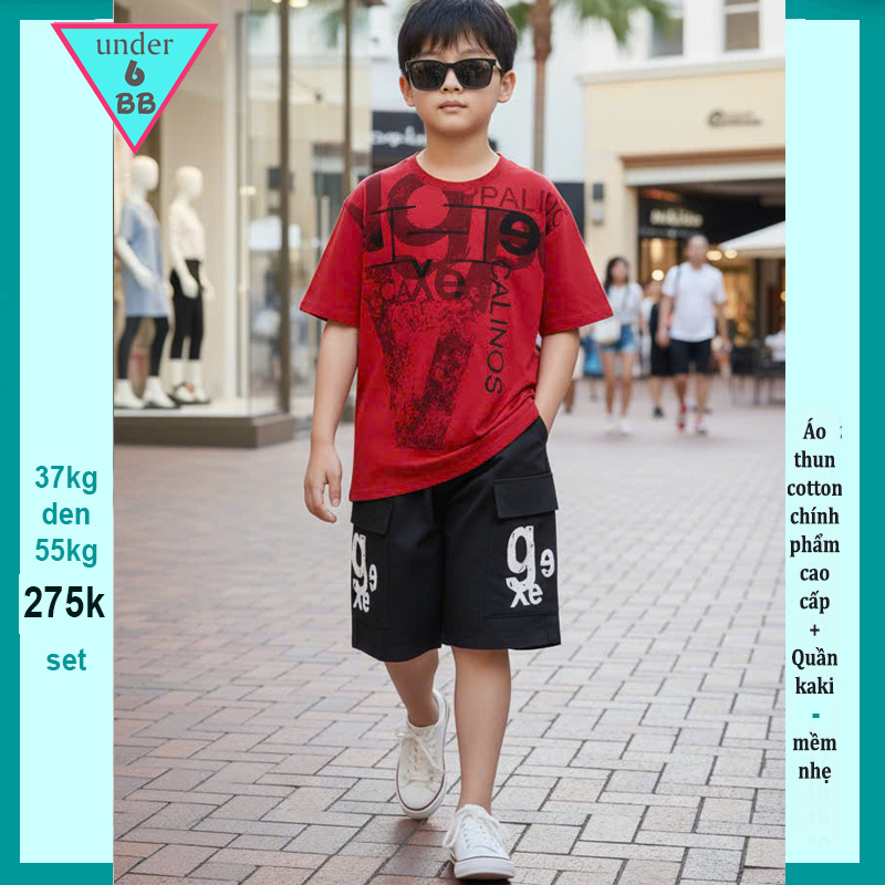 Quần áo bé trai ( Áo thun cotton + Quần Kaki ) in chữ phong cách cực ngầu cho bé đi chơi , đi du lịch
