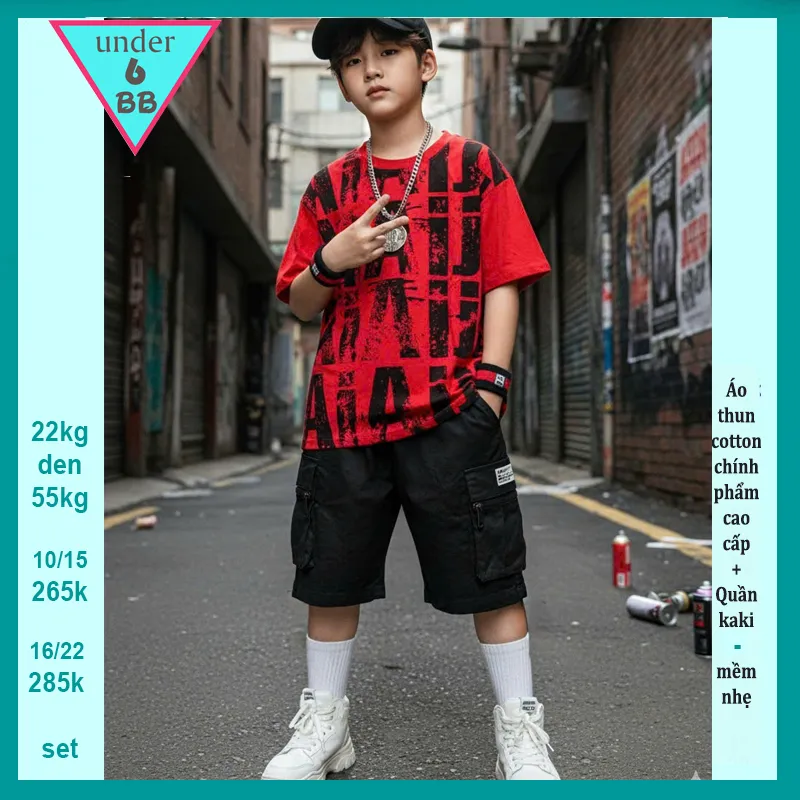 Quần áo bé trai ( Áo thun cotton + Quần Kaki ) in chữ phong cách cực ngầu cho bé đi chơi , đi du lịch