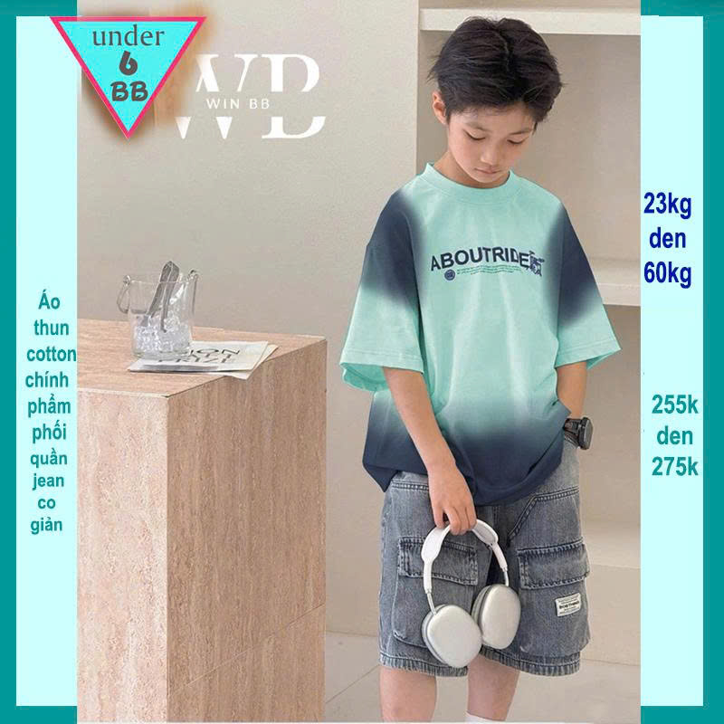 Set bộ jean bé trai ( áo vải cotton - quần jean co giãn ) in chữ phối màu loang phong cách cá tính cho bé đi chơi