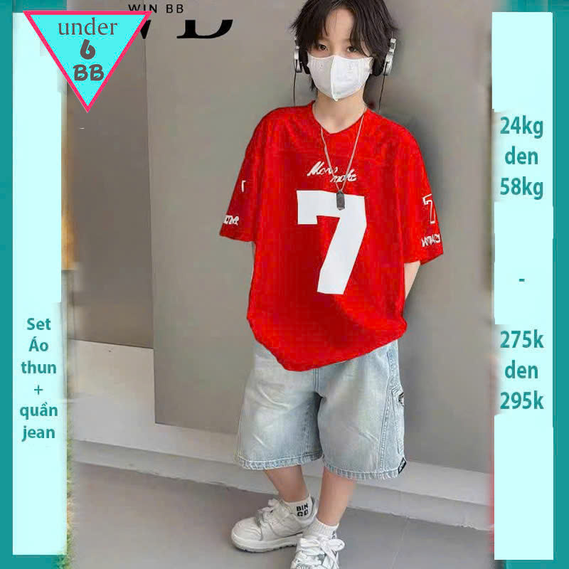 Set bộ jean bé trai ( áo vải thun cotton - quần jean co giãn ) in số 7 phong cách hàn quốc cá tính cho bé đi chơi , đi học